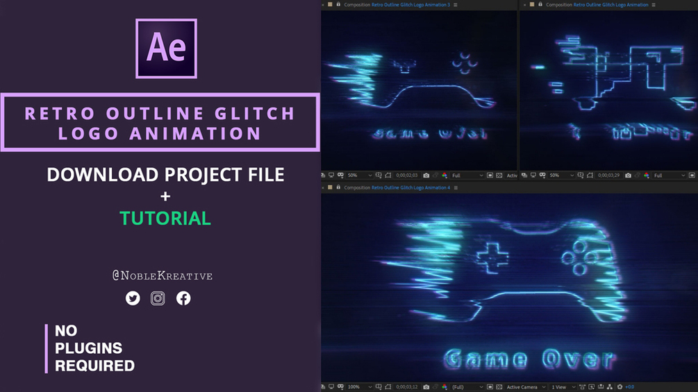 Retro Outline Glitch Logo Animation in AE | Project File